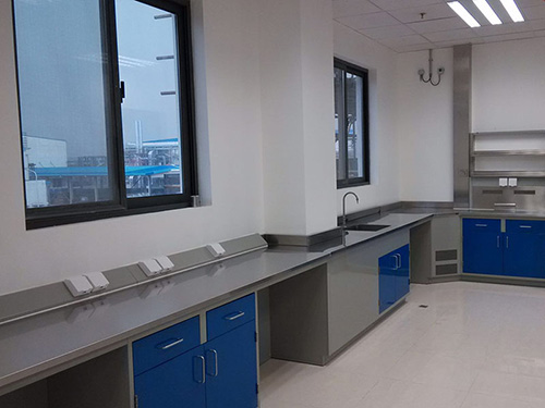 4.活動背板:中央臺中部(柜體背面)為設備夾層,柜子后部有可移動檔板,用于隱藏從地面預留或天花板引出功能柱到實驗臺面的水、電、氣管路,可在不用任何工具的情況下進入維修通道。